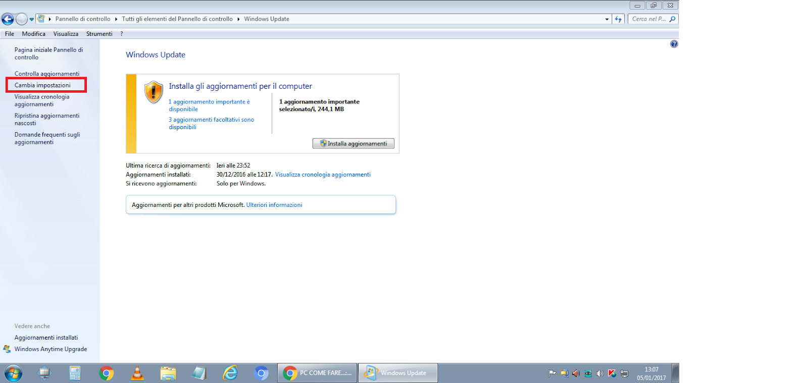-Istalla gli aggiornamenti automaticamente(scelta consigliata)
